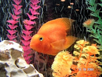 4. seemingly docile Parrotfish (see image below) are really aggressive predators. we decided to fish up some guppies from the pond outside to rear in the aquarium inside, when to our horror (and my disgust) the guppies disappeared faster than my sister's dinner did. urgh. gross. there wasnt any apparent hesitation, as though the Parrot fish were used to eating live fish, even though we only fed them with fish food up till today. fish eating other dead fish i can barely stand, fish eating other fish live? urgh.